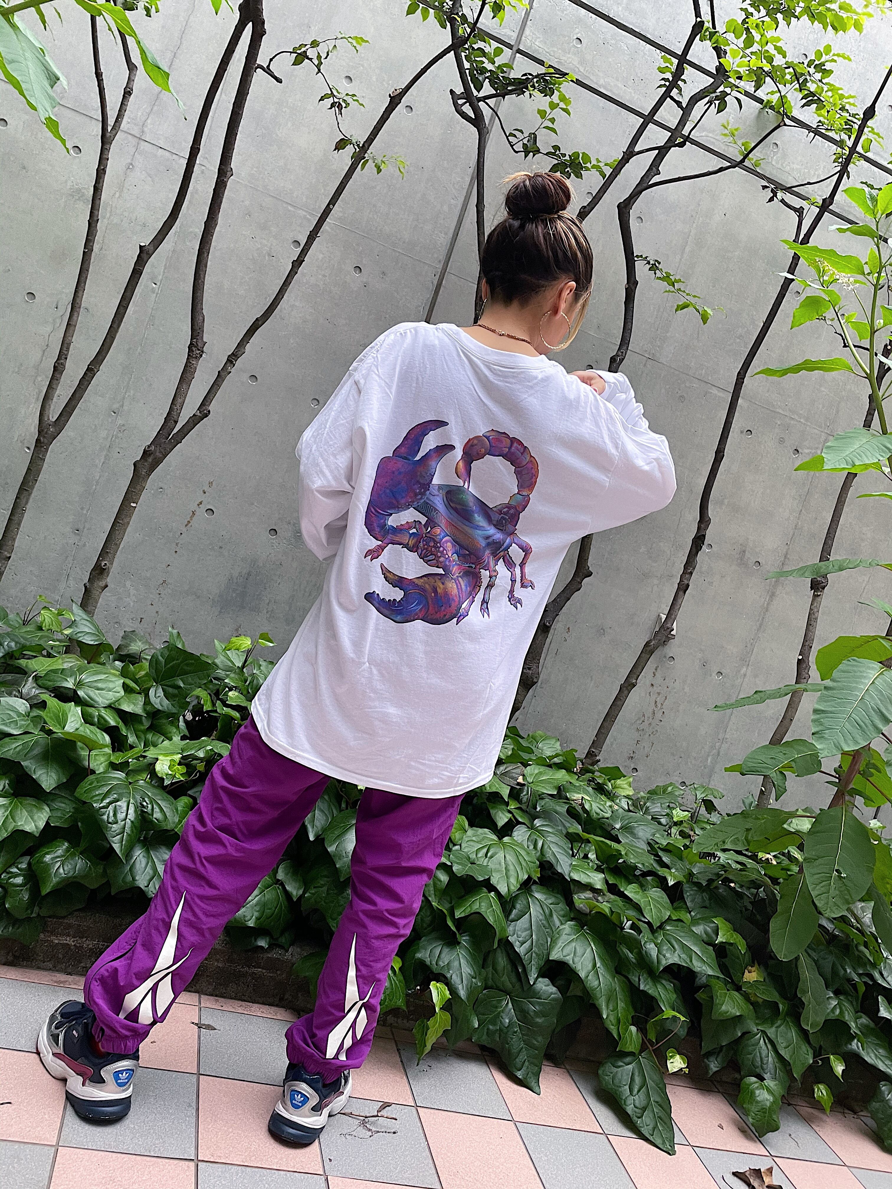 psychedelic scorpion long sleeve t-shirt white (ポケット付)