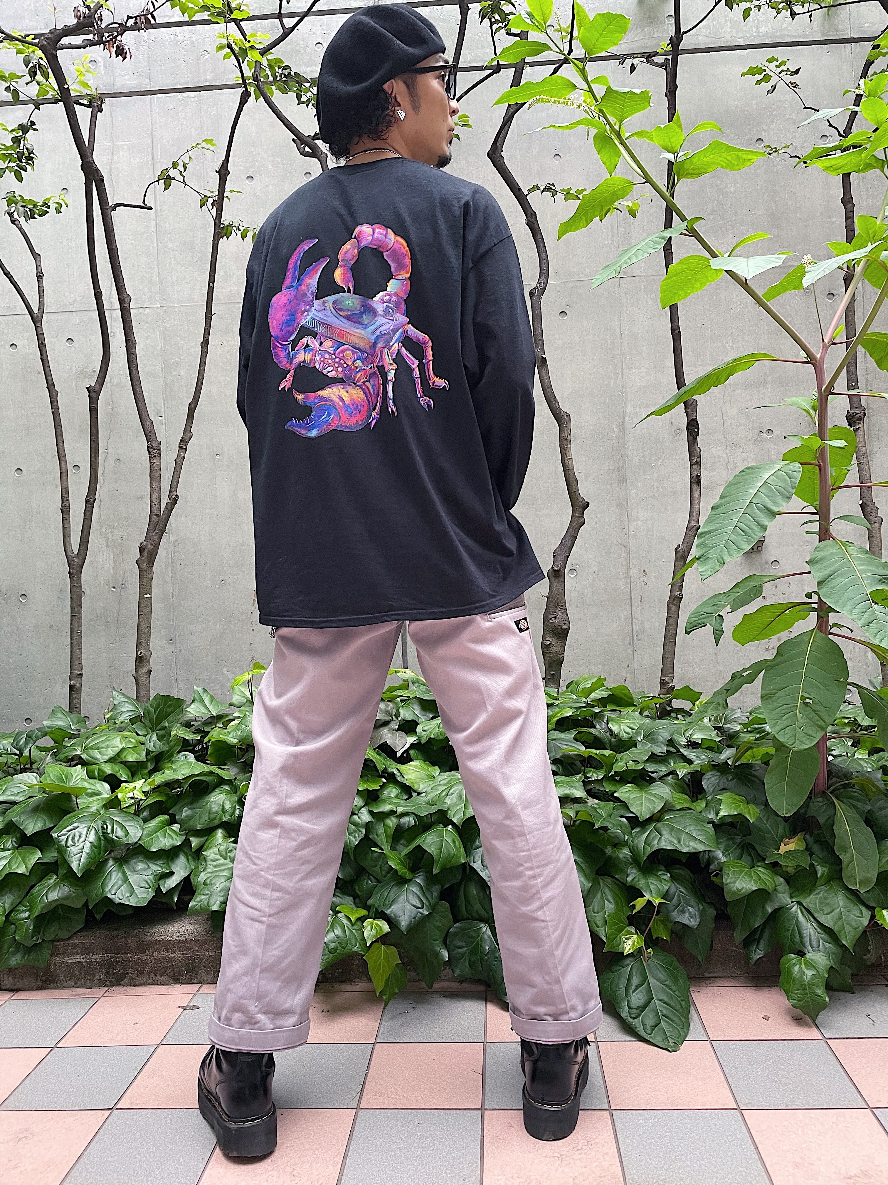 左胸のポケット部分には毒々しさを表現した『Dimly tokyo』の文字を水色でプリント。