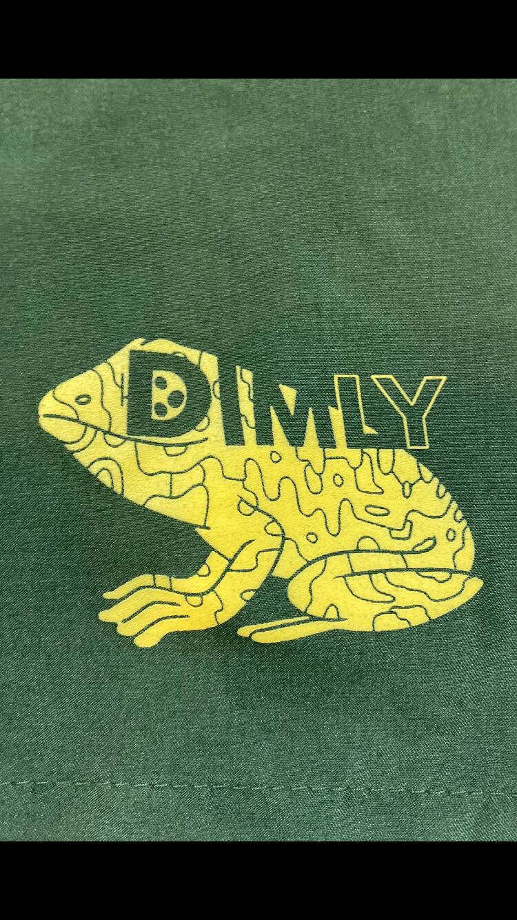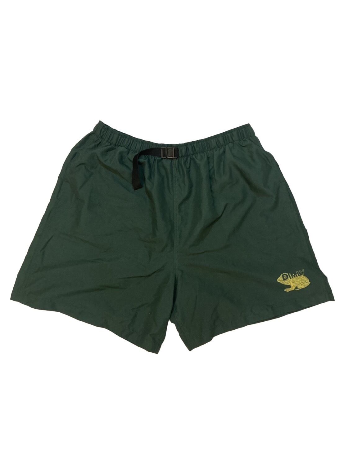 左裾部分にカエルをモチーフとしたデザインをプリントしたビーチショーツ。